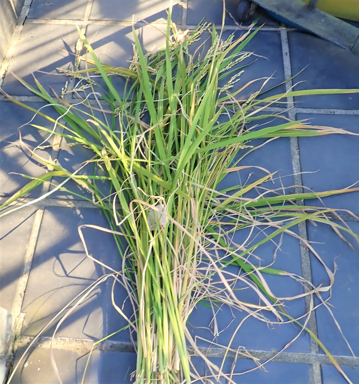 下は、ひとバケツ分のイネ。全体はこの4倍。