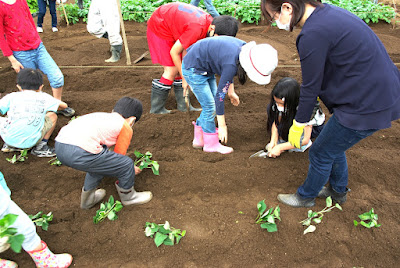 「学校を含めた身近な環境を活かして子ども達に自然体験を提供するつくし野ビオトーププロジェクトの第2回定例活動「サツマイモの苗を植えよう」が、5月15日の日曜日に行われた。13日からの降雨で14日は延期、翌日も朝の様子を見て判断という微妙な空模様だったが、用意した330本のサツマイモ(紅あずま)の苗は一部で根が出ている。