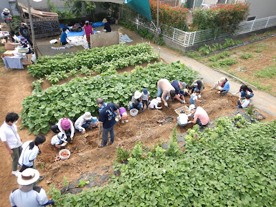 小学生は、広いほうの畑から収穫開始。