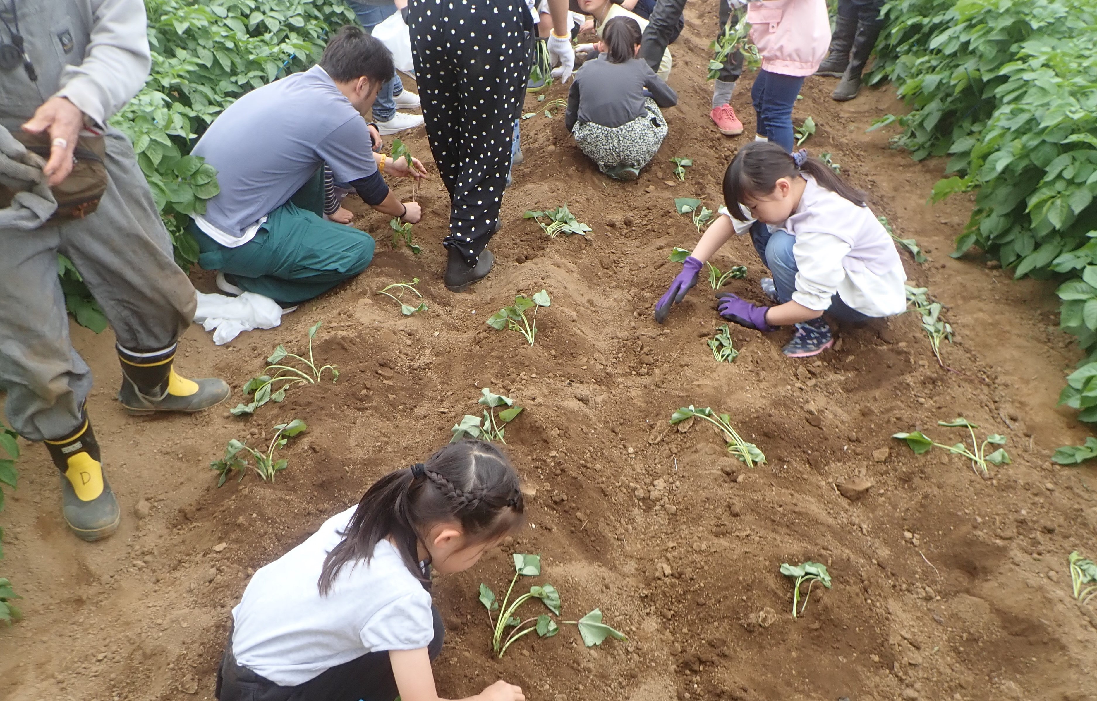 サツマイモも同じように、サツマイモでも袋づくりができることを説明。
