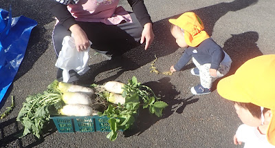 1歳・2歳児にダイコン収穫体験