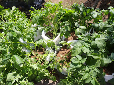 中央に昨年、格安で購入でき、私が運び、無料で用土をもらってきて、昨年はサツマイモを育てたプランターも移設され…。